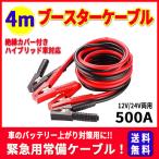 ブースターケーブル 500A 4m バッテリー上がりハイブリッド車対応 12V 24V 緊急時 非常用 耐熱性 軽自動車 普通自動車